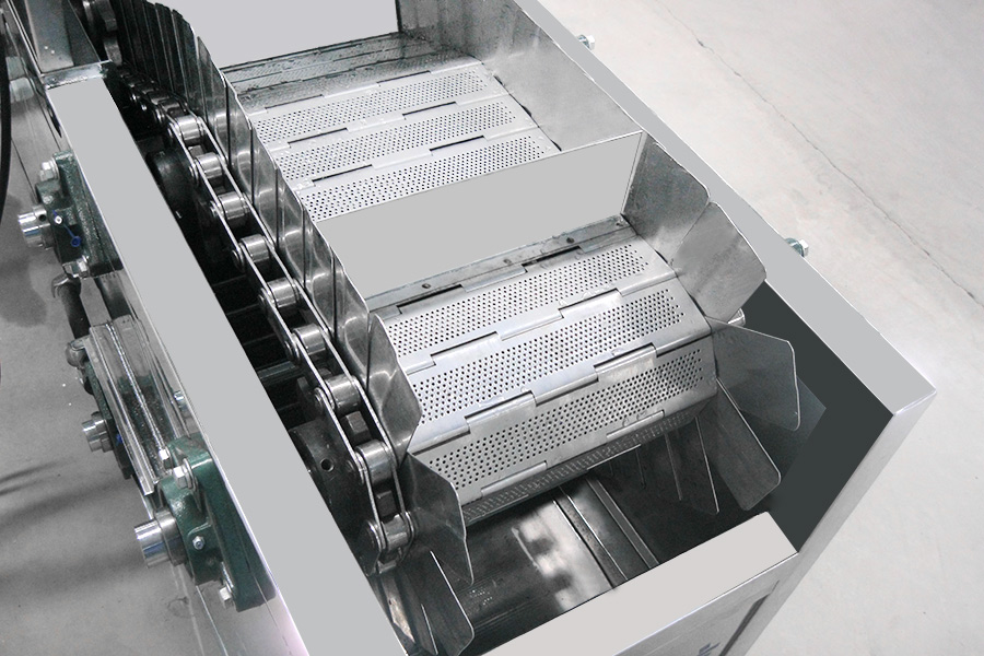 該設備有上下料網帶、超聲波清洗工位、噴淋漂洗工位、高壓風切、熱風烘干工位、溫控水加熱系統、風機、溫控空氣加熱系統、移動式風刀、PLC+觸摸屏控制系統、管路系統及智能電器控制系統等組成。自動進排液和自動加溫系統完全實現了無人干預,自動運行,很大程度上降低了工人的勞動強度。先進的霧氣處理系統可以將清洗時產生的霧氣冷凝回流,空氣經過濾和活性炭吸附后排出。
