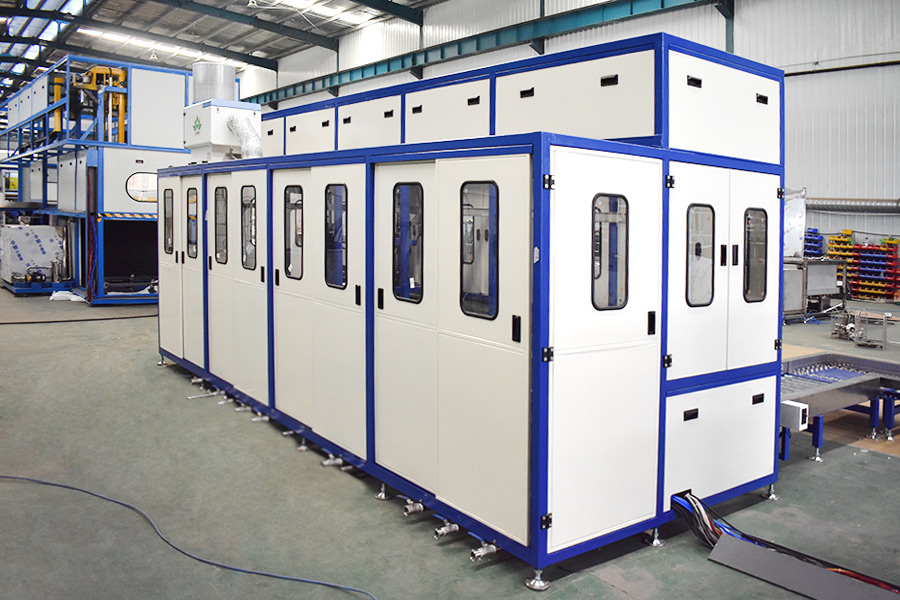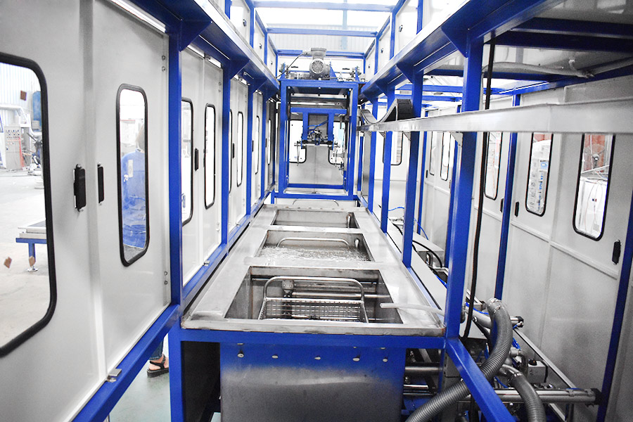 The equipment has automatic loading and unloading and corner system, ultrasonic cleaning system, automatic throwing, automatic overflow and oil separation device, spray system, automatic high-pressure water cutting system, and automatic drying system. The robot automatic conveying system adopts high-precision linear guide rails and high-precision position detection sensors, and the robot can accurately grasp and place the workpiece. The automatic feeding and discharging and automatic heating system completely realizes unmanned intervention and automatic operation, which greatly reduces the labor intensity of workers. The advanced mist treatment system can condense and return the mist generated during cleaning, and the air will be discharged after being filtered and adsorbed by activated carbon.