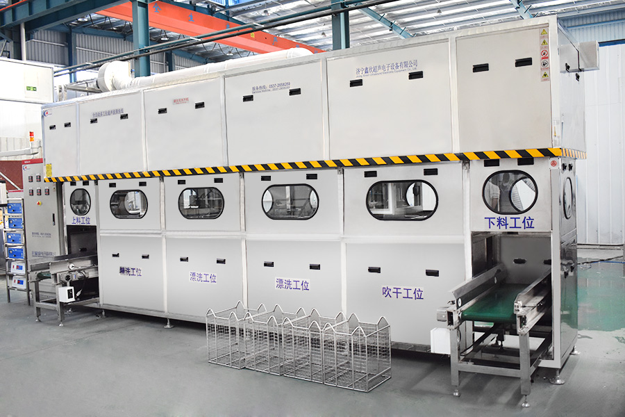 The equipment has automatic loading and unloading and corner system, ultrasonic cleaning system, automatic throwing, automatic overflow and oil separation device, spray system, automatic high-pressure water cutting system, and automatic drying system. The robot automatic conveying system uses high-precision linear guide rails with high-precision position detection sensors, and the robot can accurately grasp and place the workpiece. The automatic feeding and discharging and automatic heating system completely realizes unmanned intervention and automatic operation, which greatly reduces the labor intensity of workers. The advanced mist treatment system can condense and return the mist generated during cleaning, and the air will be discharged after being filtered and adsorbed by activated carbon.