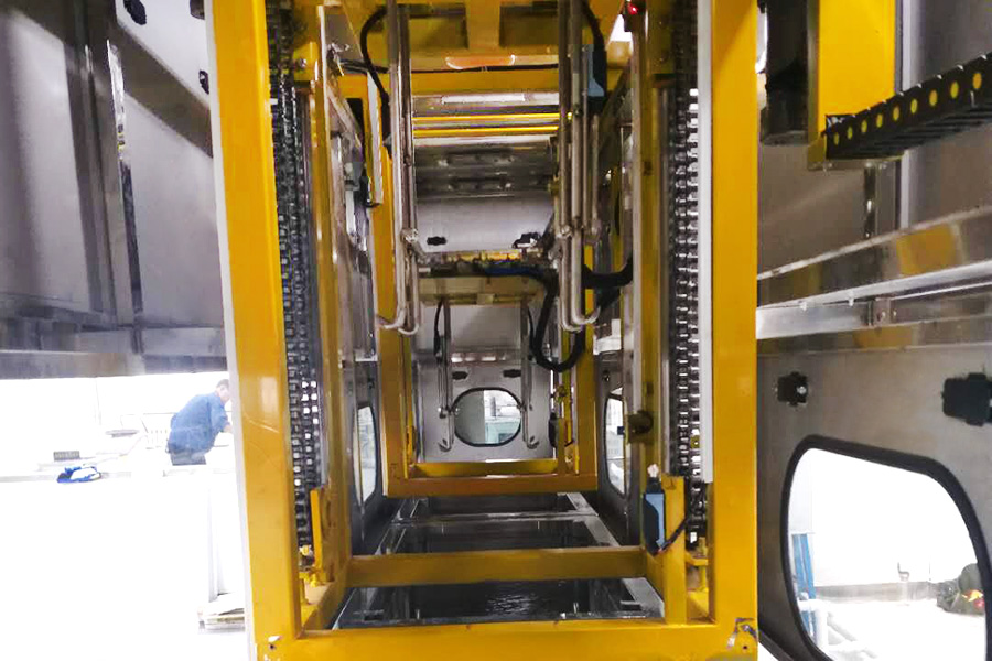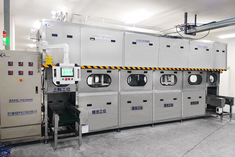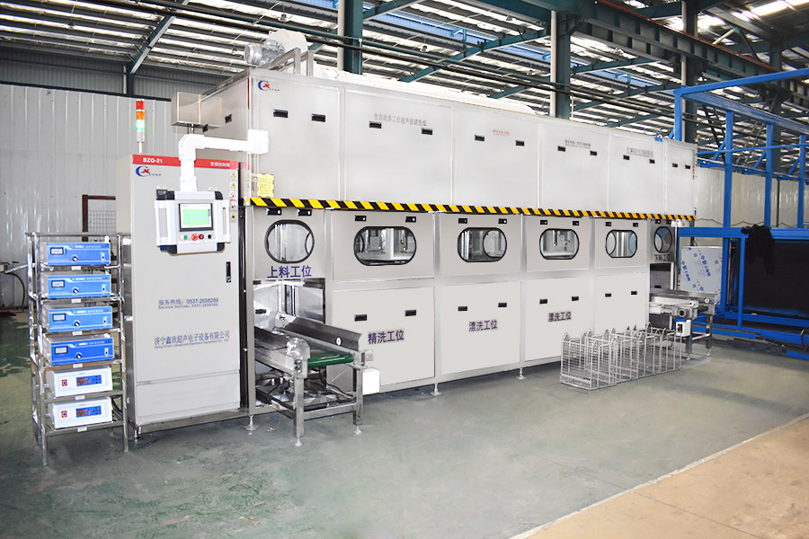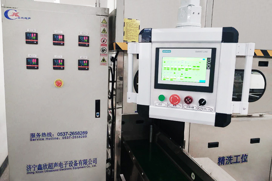 該設(shè)備有自動上下料及轉(zhuǎn)角系統(tǒng)、超聲波清洗系統(tǒng),自動拋動、自動溢流和油污分離裝置,噴淋系統(tǒng)、自動高壓切水系統(tǒng)、自動烘干系統(tǒng)。機械手自動輸送系統(tǒng)采用高精度直線導(dǎo)軌配合高精度位置檢測傳感器,機械手可以準確的實現(xiàn)工件的抓取和放置。自動進排液和自動加溫系統(tǒng)完全實現(xiàn)了無人干預(yù),自動運行,很大程度上降低了工人的勞動強度。先進的霧氣處理系統(tǒng)可以將清洗時產(chǎn)生的霧氣冷凝回流,空氣經(jīng)過濾和活性炭吸附后排出。
